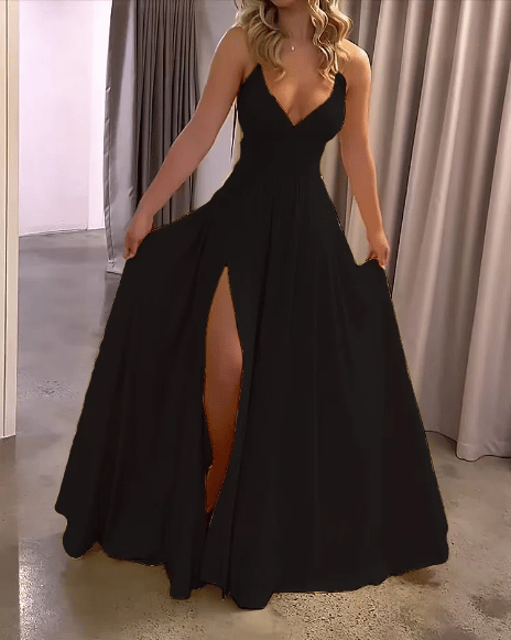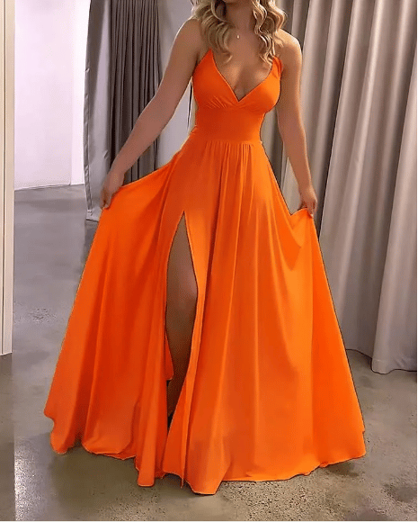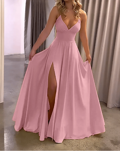 Sukienka z paskiem w jednolitym kolorze jest wykonana z luksusowej satyny, która zapewnia miękki i jedwabisty dotyk na skórze. Eleganckie ramiączka dodają delikatności, a śmiały rozporek dodaje Twojemu wyglądowi nuty dramatyzmu i wyrafinowania.