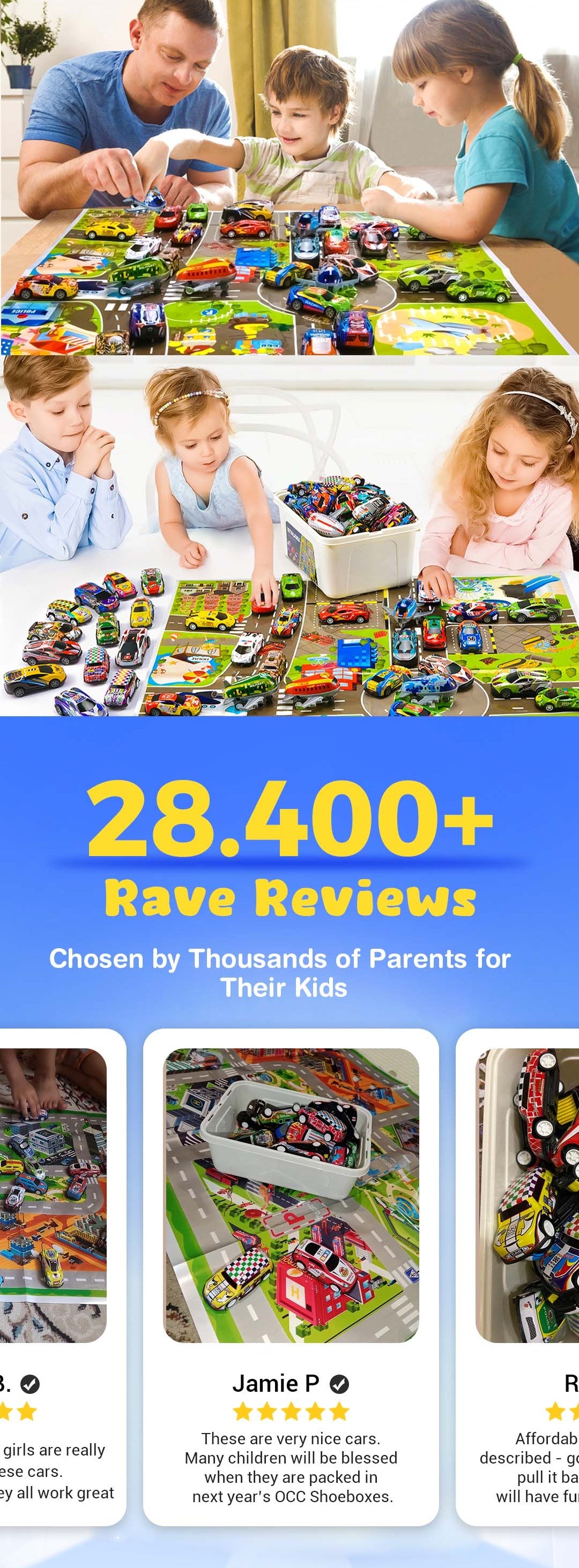 - 52 samochodziki (50 samochodzików + 2 duże nóżki ) z pudełkiem