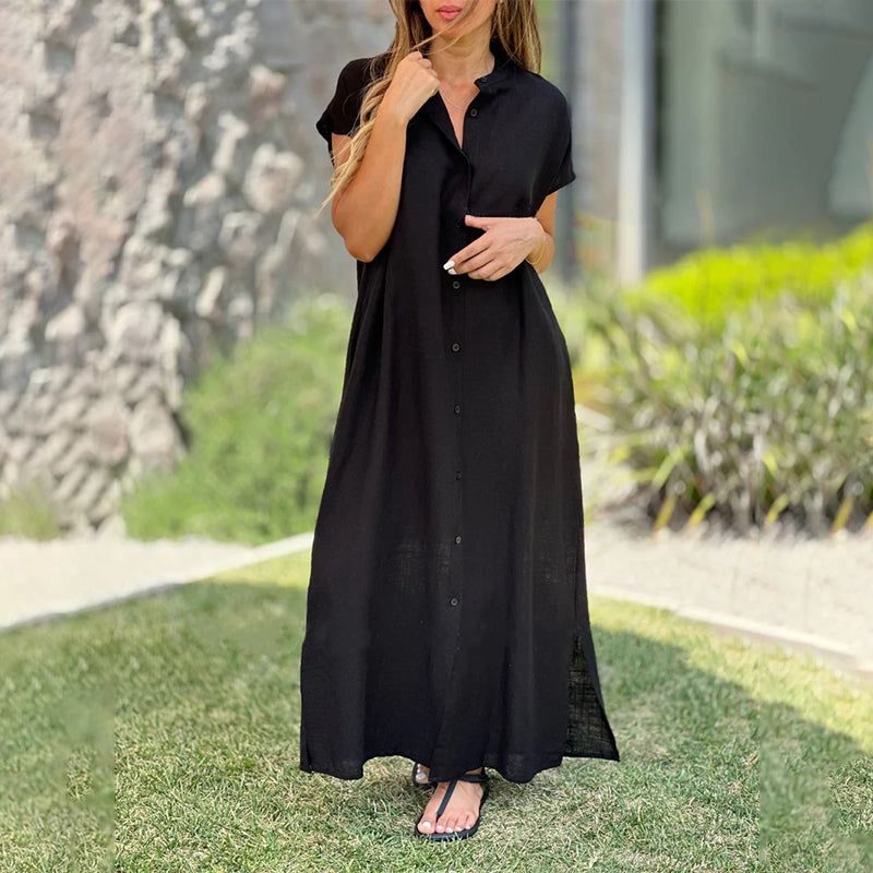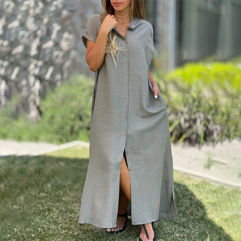 Pakiet zawiera: 1 * Damska luźna koszulowa sukienka z rozcięciem z boku, zapinana na guziki