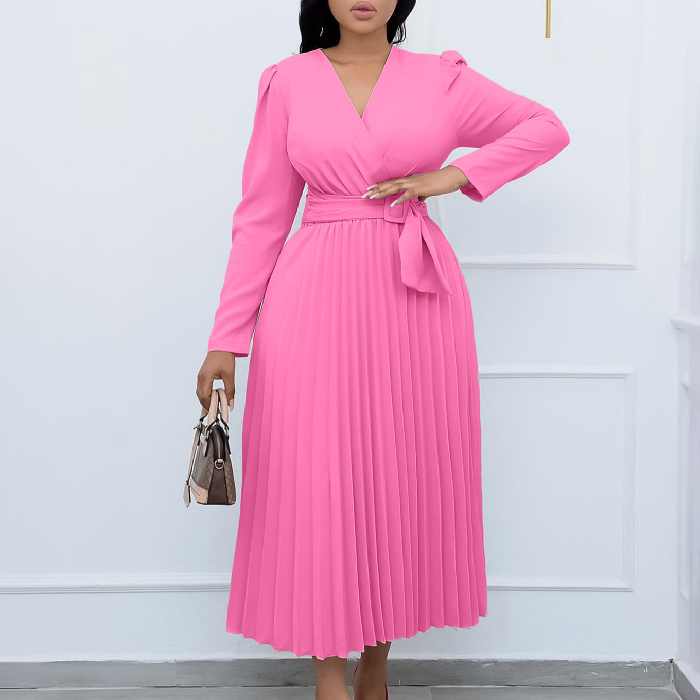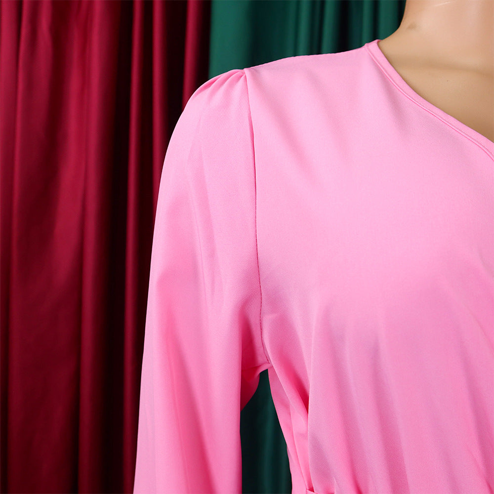 Wąski krój z długimi rękawami podkreśla kształty ciała i ukazuje kobiecą elegancję i urok. Dekolt w kształcie litery V zwiększa linię kołnierza, czyniąc go eleganckim i uroczym.