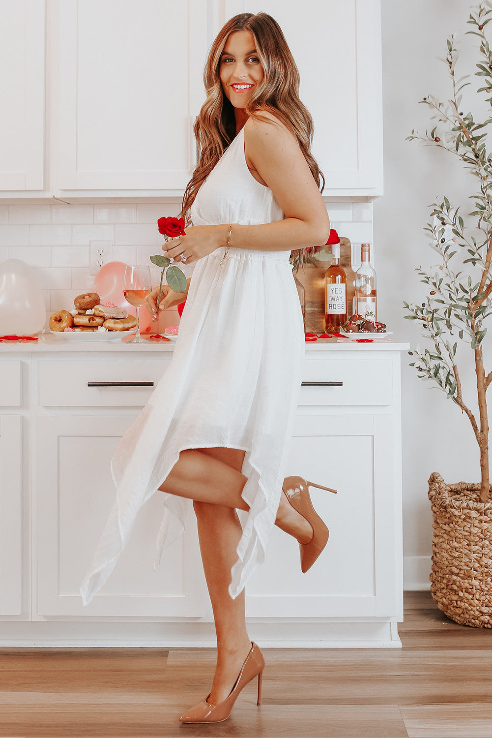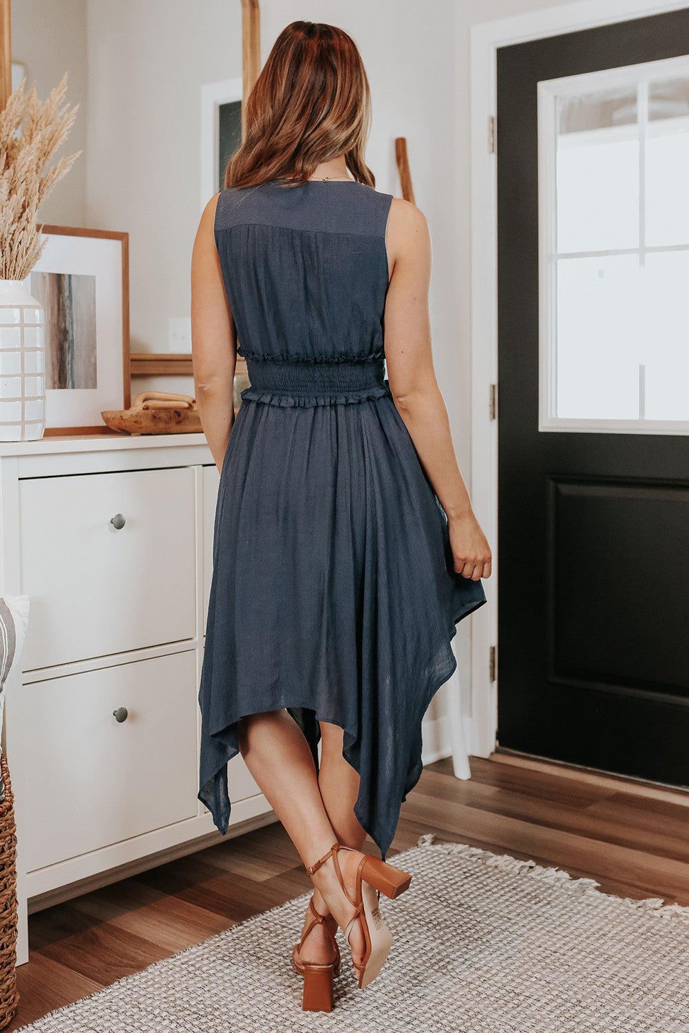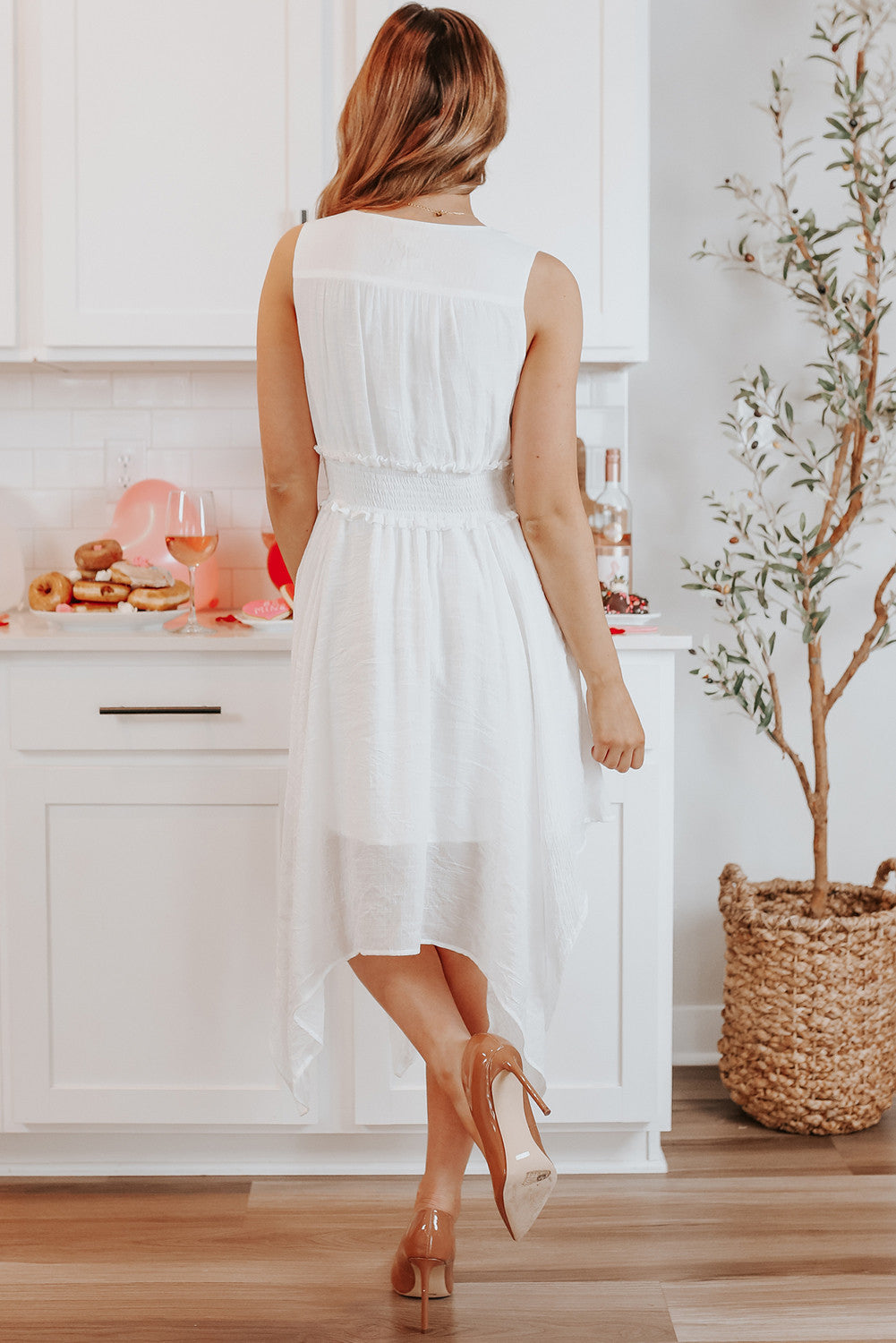 Modny krój z dekoltem w kształcie litery V 💃: Ta asymetryczna, marszczona gumowa sukienka midi z wysokim stanem i dekoltem w kształcie litery V, bez rękawów, łączy w sobie nowoczesny fason i elegancki design, dodając niepowtarzalnego uroku i sprawiając, że będziesz olśniewać przy każdej okazji.