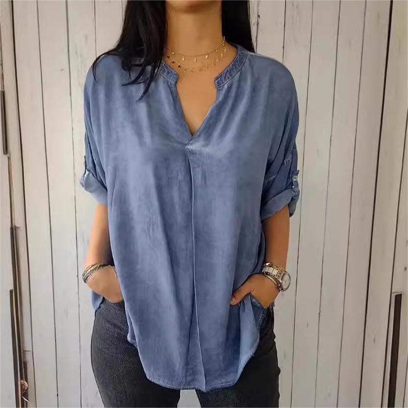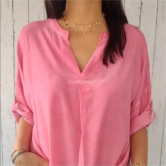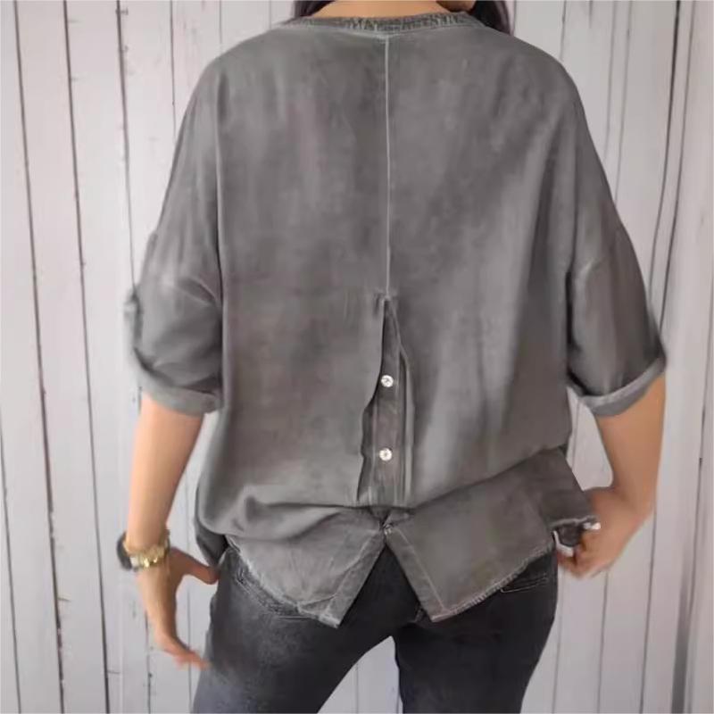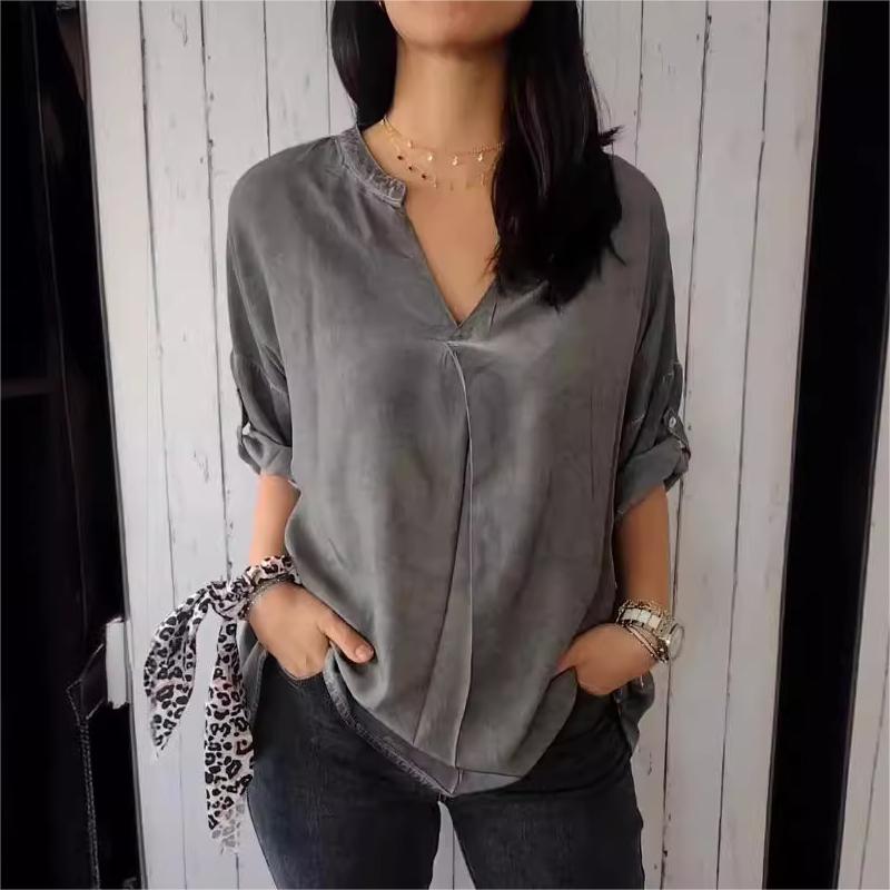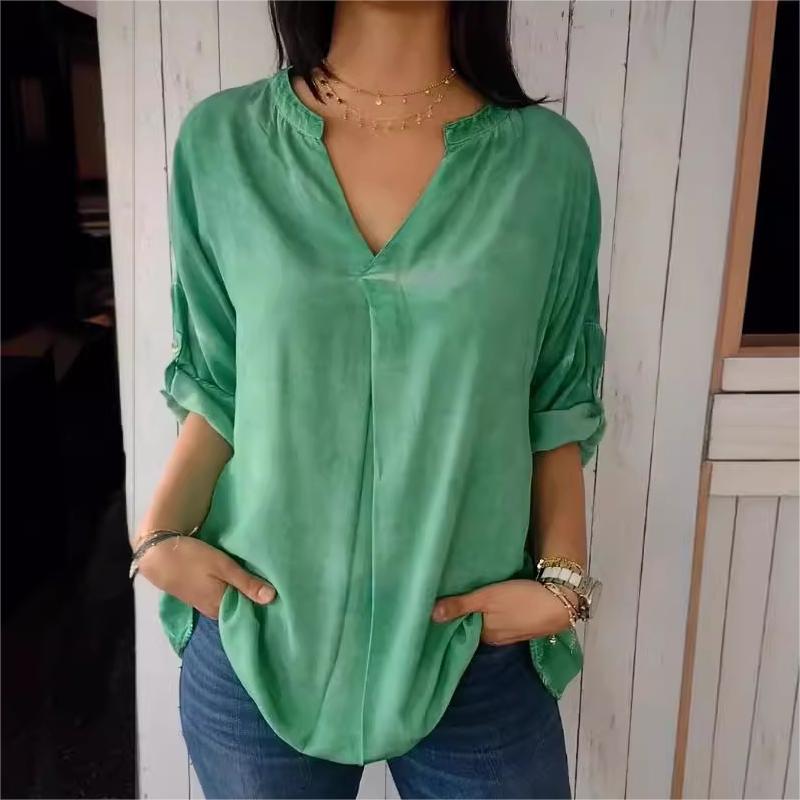 Płaski dekolt w kształcie litery V: Dekolt w kształcie litery V dodaje temu casualowemu topowi delikatnej elegancji. Podkreśla dekolt i tworzy pochlebną sylwetkę dla wszystkich typów ciała.