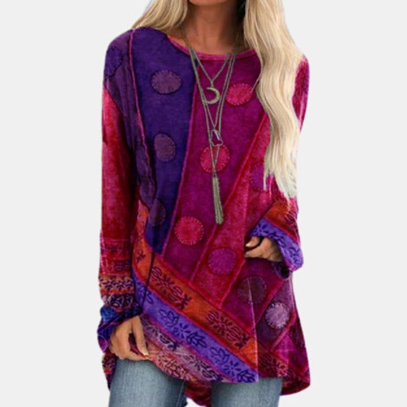 Ta jesienno-zimowa koszulka łączy w sobie styl etniczny i elementy retro, z unikalnymi wzorami i stylami projektowania, ukazując wyjątkowe wyczucie mody.