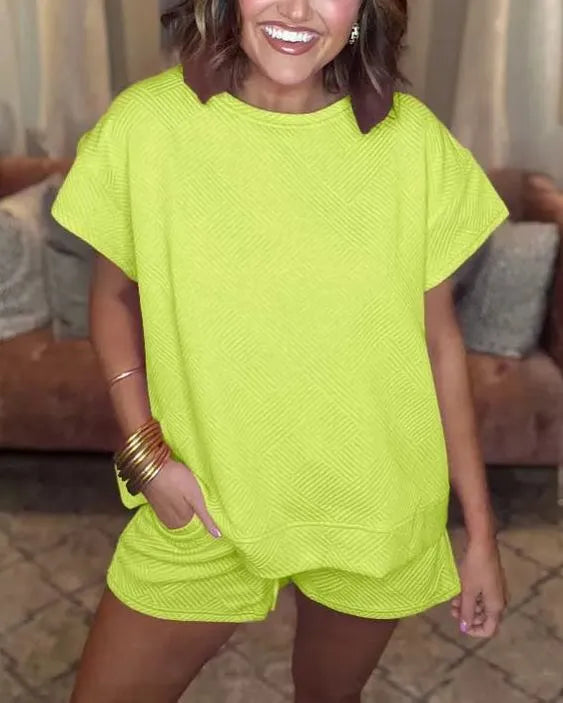 Poczuj się komfortowo w naszym zestawie szortów z teksturowanym sznurkiem, który łączy styl z wypoczynkiem. Dzięki zrelaksowanym odcieniom szarości i eleganckiemu teksturowanemu wzornictwu idealnie nadaje się do swobodnego wyglądu lub relaksującego dnia na świeżym powietrzu.