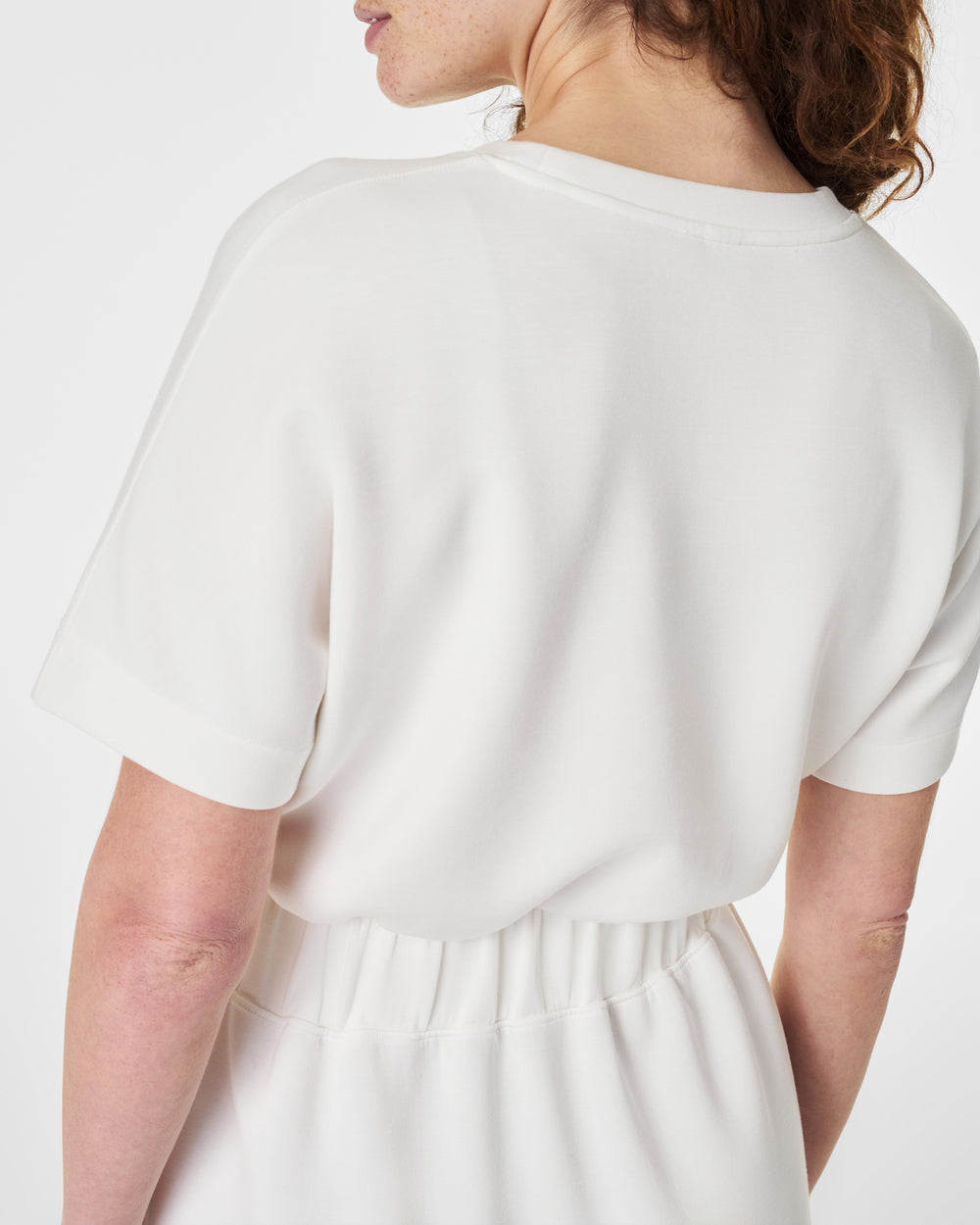 Luksusowy komfort, który pasuje do dowolnego miejsca. Ta krótka sukienka ma ukryty elastyczny pas, który określa twoją sylwetkę i niskie przednie kieszenie.