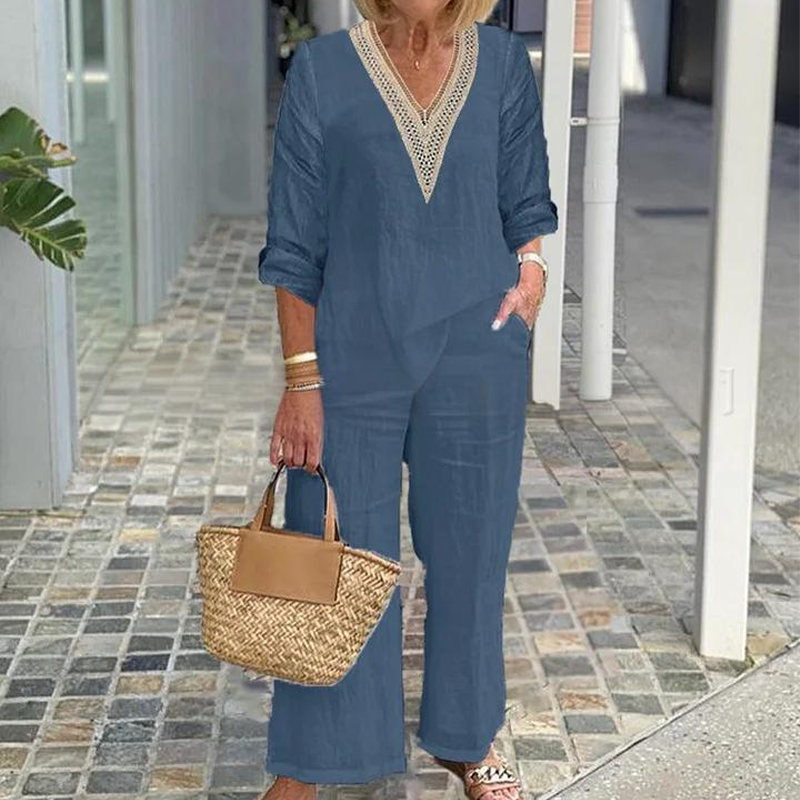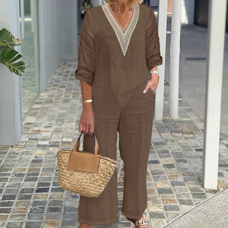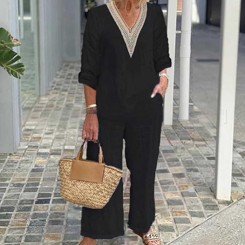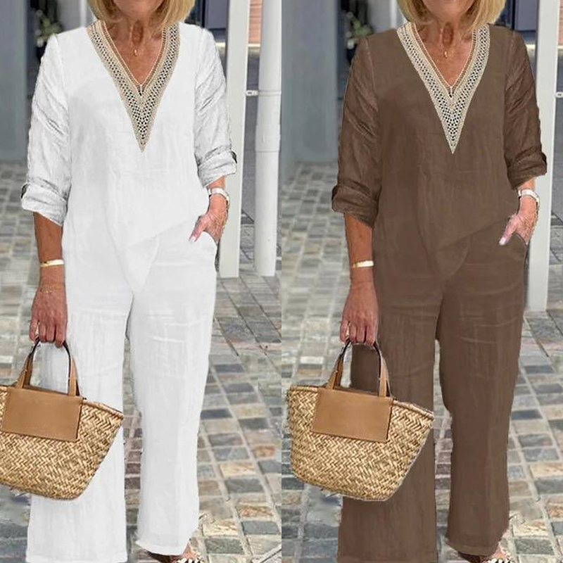Treść opakowania: 1 * Top z V -Neckline dla kobiet i spodni z szerokimi nogami