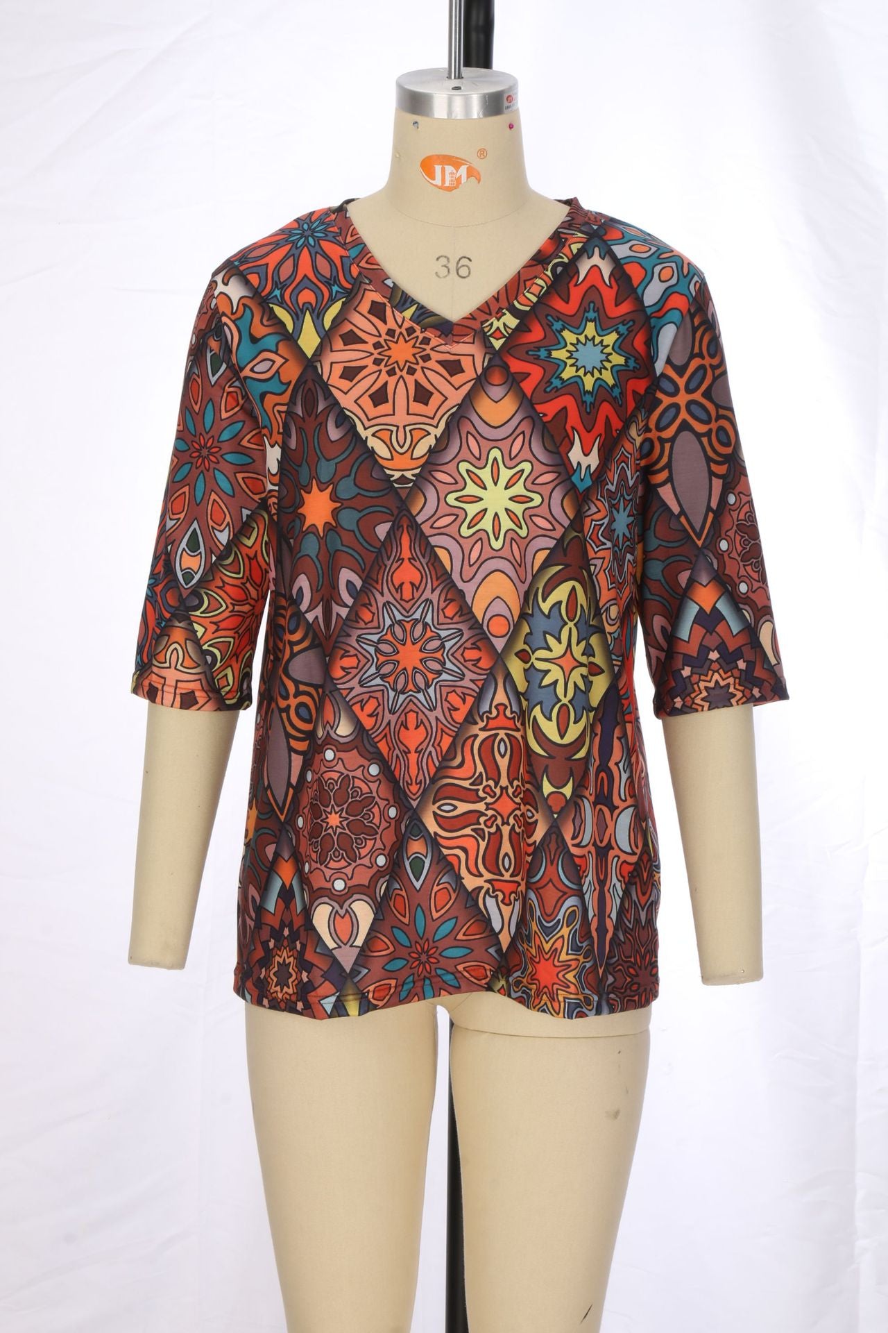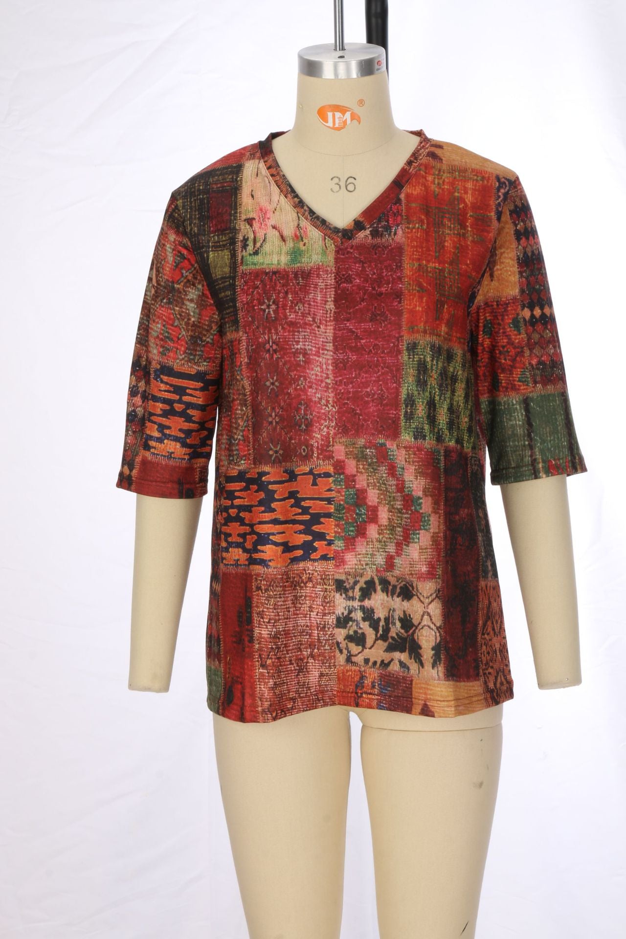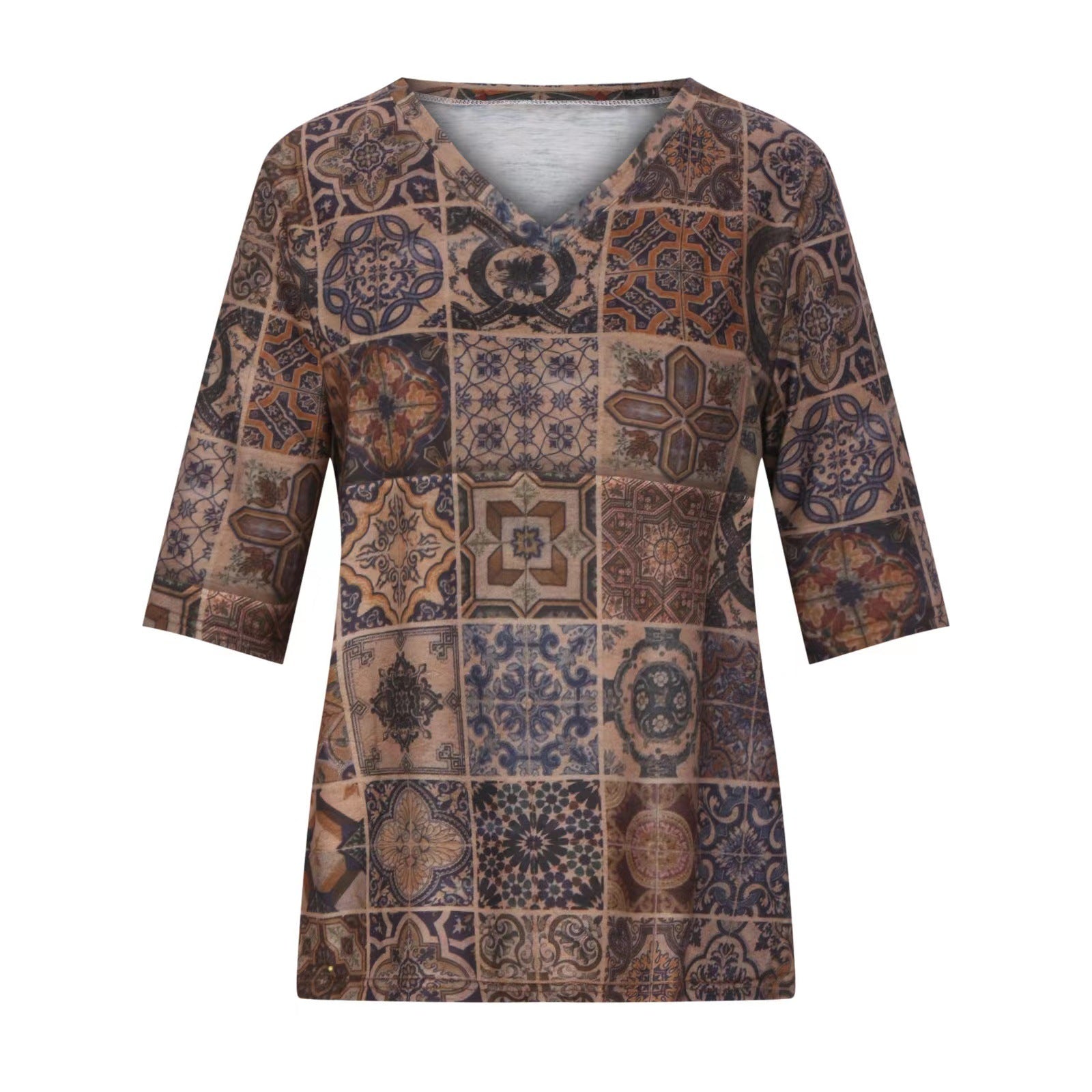 Retro etniczny nadruk 🌟 Ta koszulka z krótkim rękawem została zaprojektowana z unikalnym etnicznym nadrukiem, który nadaje mocny klimat retro. Wzory w jaskrawych kolorach nadadzą Twojemu wyglądowi charakteru i kunsztu.