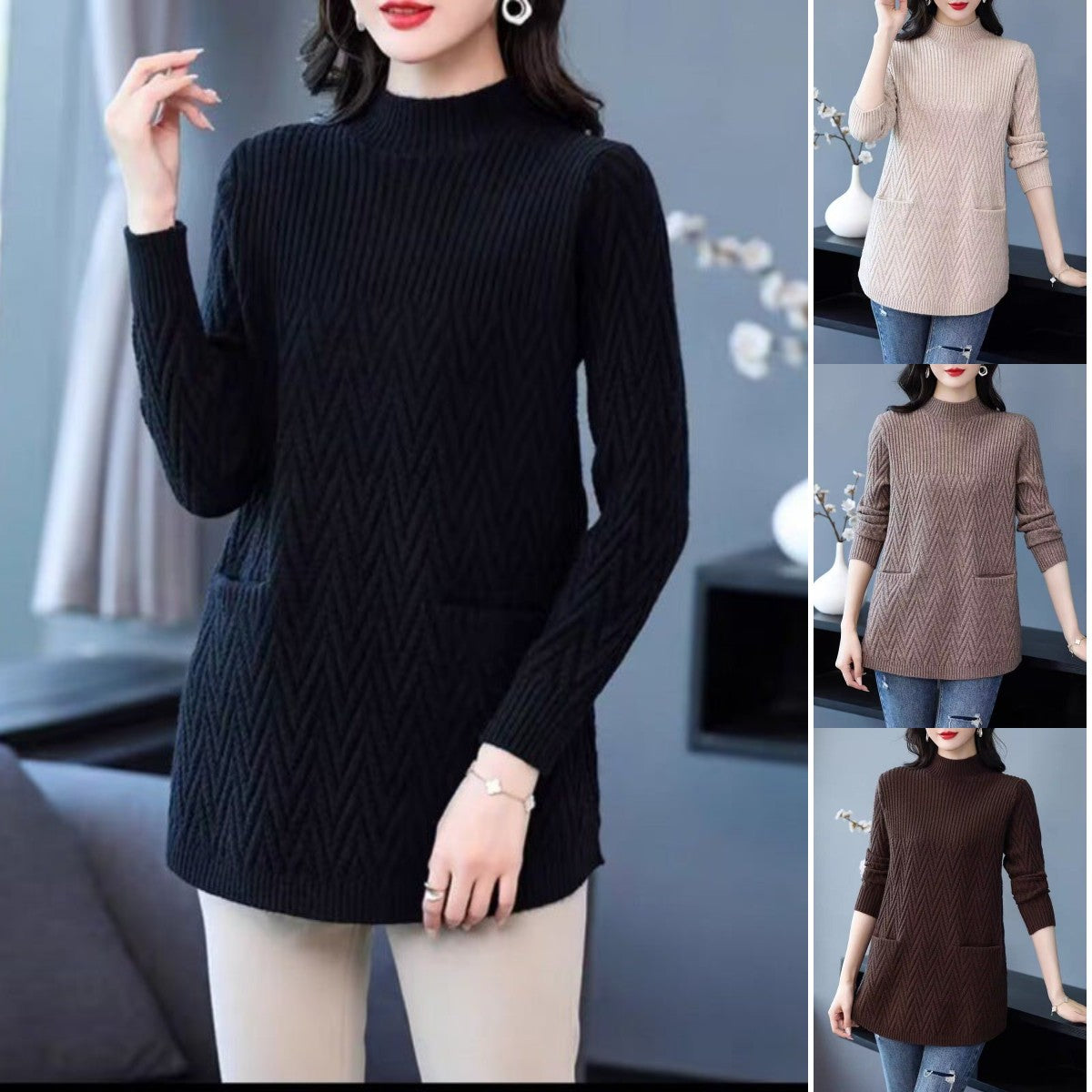 Bez wysiłku otul się stylem i ciepłem dzięki naszemu damskiemu swetrowi z półgolfem o średniej długości. Ten wszechstronny model łączy w sobie wygodę i wyrafinowanie, dzięki czemu jest niezbędnym dodatkiem do garderoby. Niezależnie od tego, czy ubierasz się na wieczorne wyjście, czy na co dzień, ten sweter zapewnia przytulność i szyk bez względu na okazję.