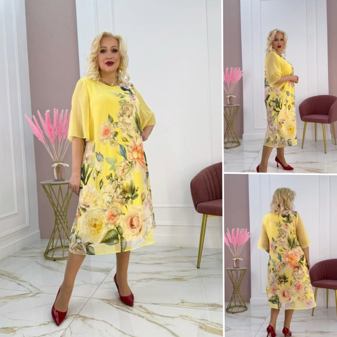 [S-5XL]🌸Nowa sukienka z szyfonu z półrękawem i nadrukowaną siateczką 2025