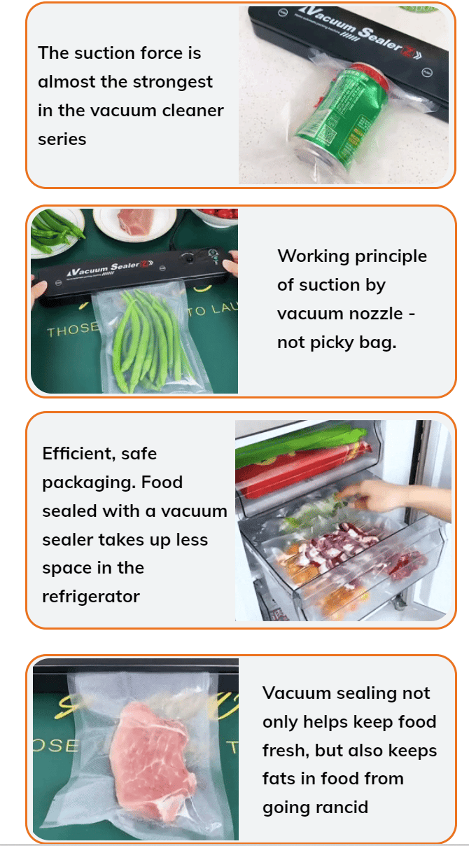 ⭐ 【Świetny pomocnik kuchenny】 Automatyczny pakowacz próżniowy do żywności utrzymuje świeżość owoców, orzechów, mięsa, słodyczy i warzyw, zapobiegając przypalaniu, formowaniu i zepsuciu żywności w zamrażarce, ogranicza psucie się i marnowanie żywności, utrzymuje świeżość żywności do 2x dłużej.