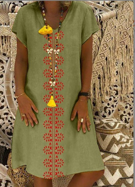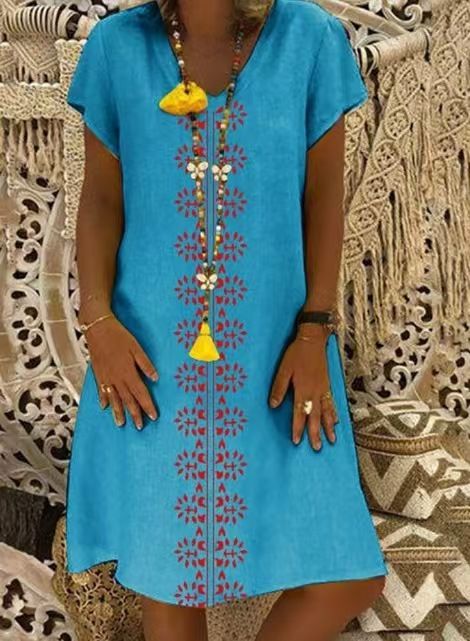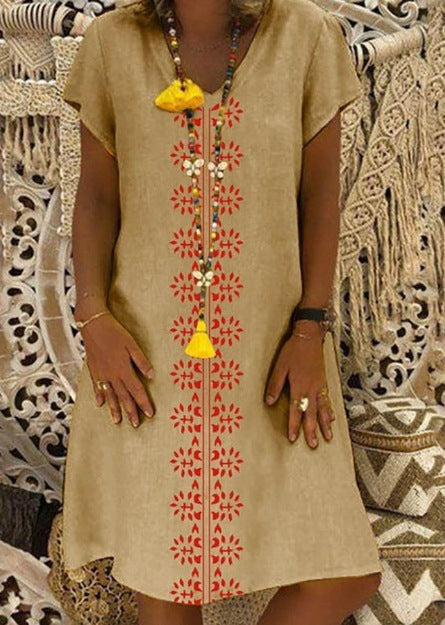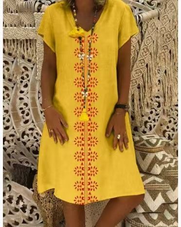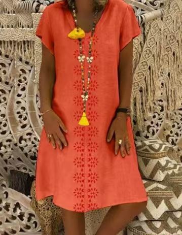 Ta kobieca sukienka łączy w sobie styl i wygodę dzięki naturalnemu połączeniu bawełny i lnu. Materiał jest przewiewny, oddychający i niezwykle przyjemny w dotyku – idealny na gorące dni.