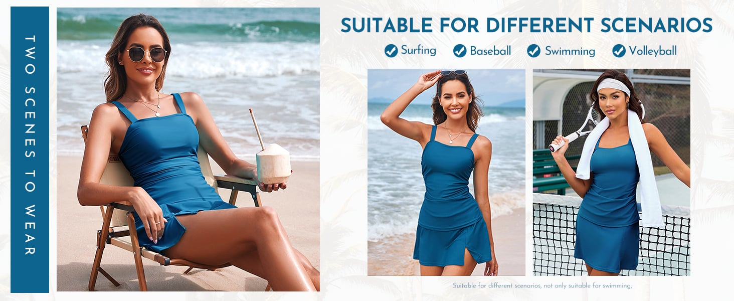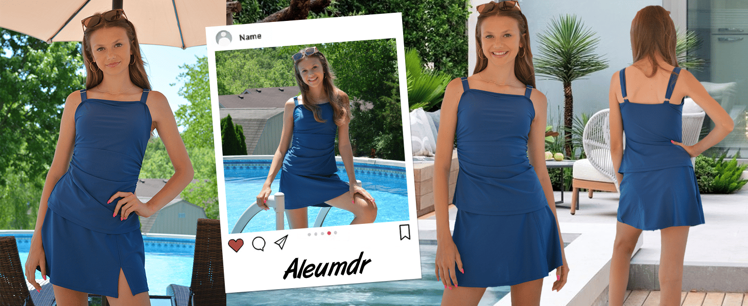 Tankini Swimsuits Swimdress: Pochlebny kwadratowy dekolt z plisowaną konstrukcją dla dodatkowego stylu. Szerokie regulowane paski na ramię i zdejmowane wyściełane kubki doskonałe wsparcie dla biustu