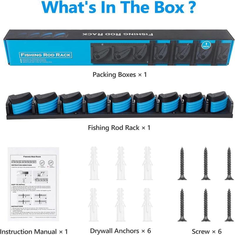 UȘOR DE INSTALAT ȘI APLICABILE PE larg - Suporturile noastre de undiță au 5 găuri de montare pentru montare sigură pe perete. Este nevoie de doar 4 pași pentru a obține suporturi complet instalate pentru garajul dvs. Potrivit pentru undițe telescopice, undițe de spinning și turnare și undițe de pescuit cu gheață. Depozitarea articolelor de pescuit este esențială pentru fiecare pescar, cel mai bun cadou de pescuit pentru bărbați.
