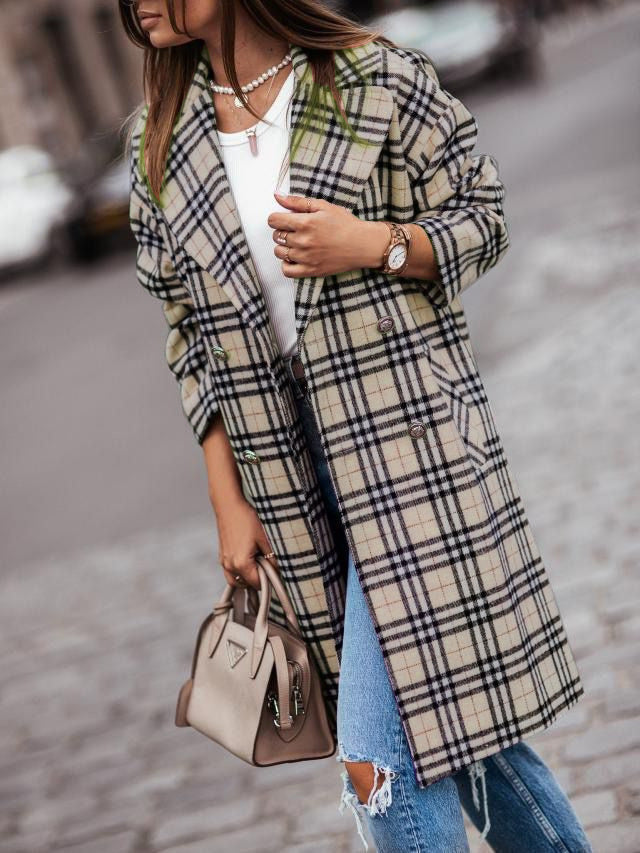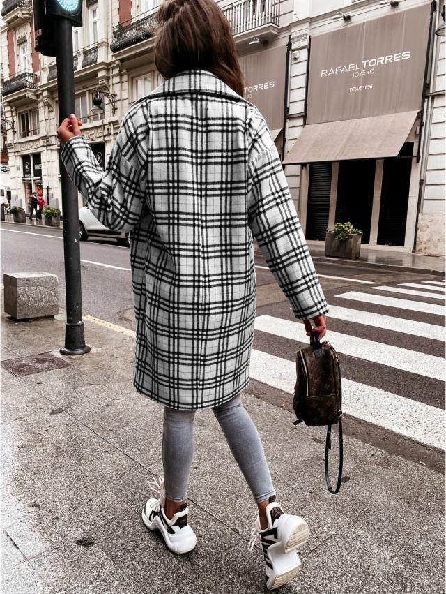 🌟 Projektowanie mody: Ten wełniany płaszcz średniej długości z nadrukowanym kołnierzem z klapami dla kobiet łączy w sobie klasyczny krój kołnierzyka garnituru z nowoczesnymi elementami z nadrukiem. Jest pełen wyczucia mody i uroku osobowości, dzięki czemu możesz pokazać swoją elegancję jesienią i zimą.