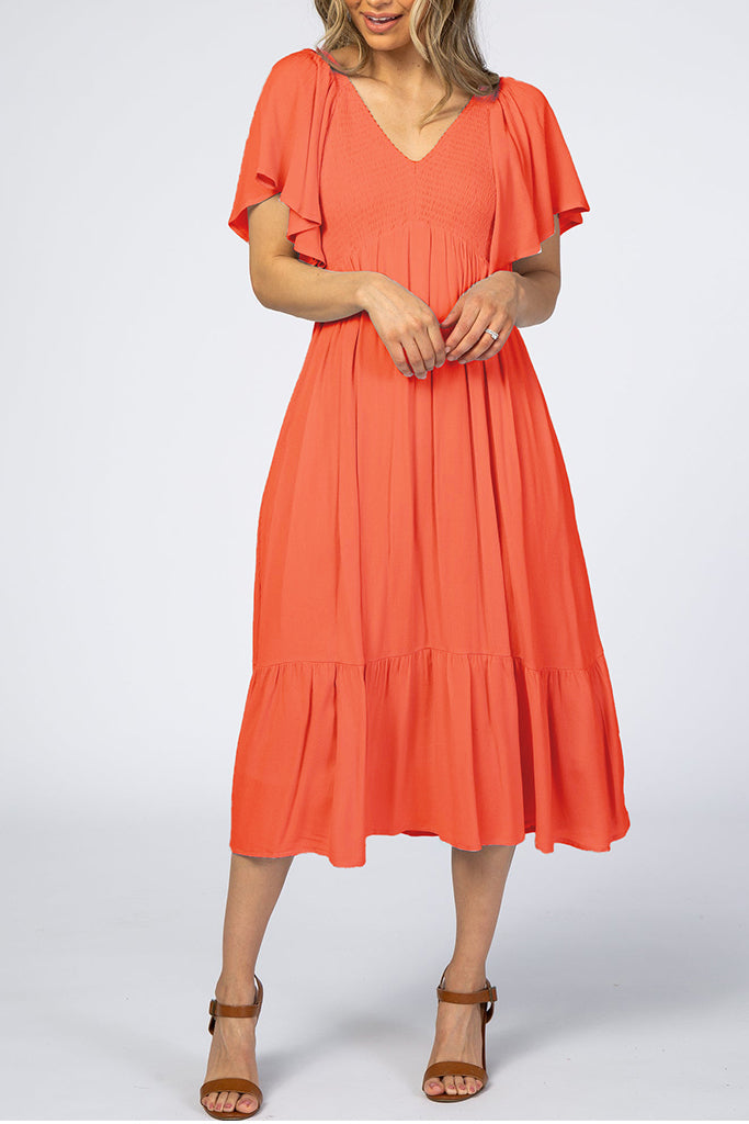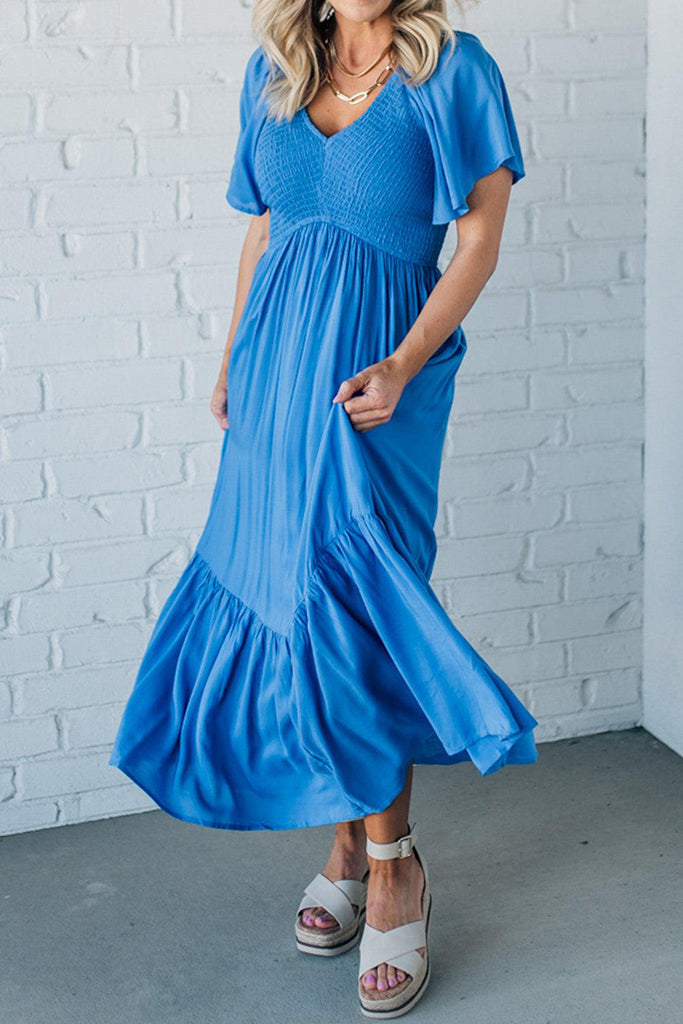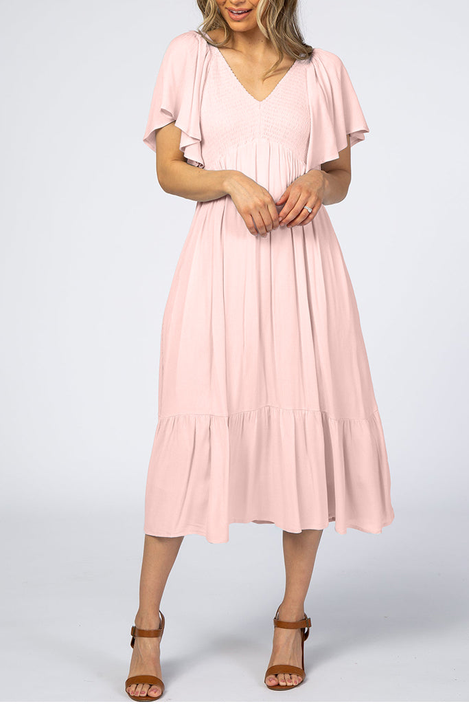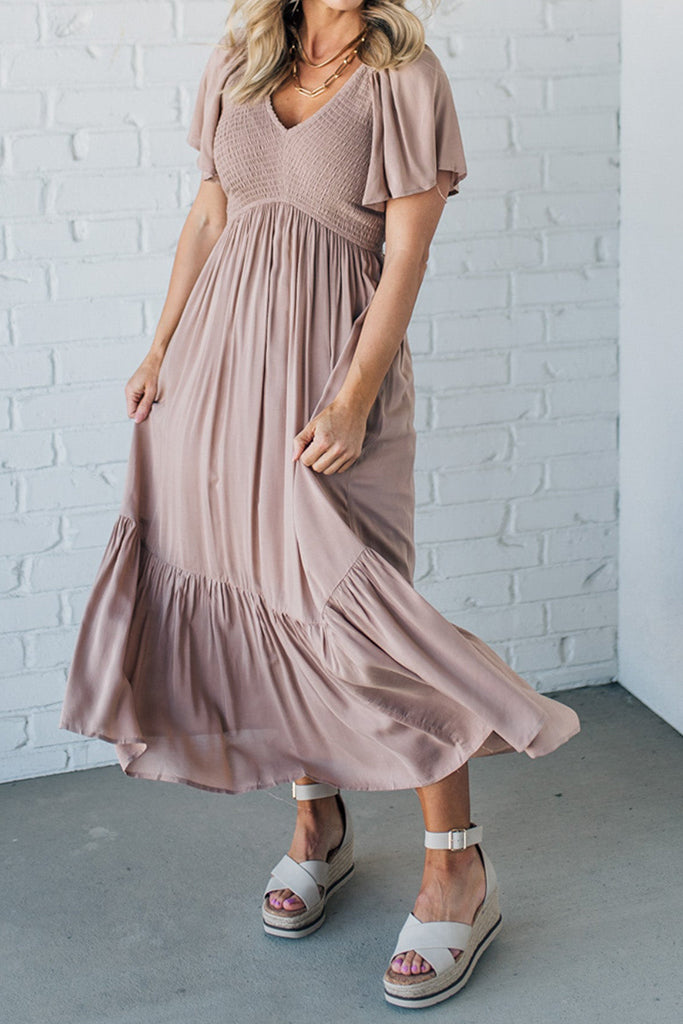 Przygotuj się na przyciągnięcie uwagi w zwiewnej sukience Winnie Smocked. Marszczony stanik z przodu i z tyłu podkreśla sylwetkę, a falowane rękawy i falbankowy dół dodają elegancji. Dodatkowo dzięki jedwabistej tkaninie modalowej będziesz czuć się komfortowo i pewnie przez cały dzień. Nie przegap tej sukienki, którą musisz mieć!