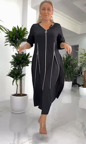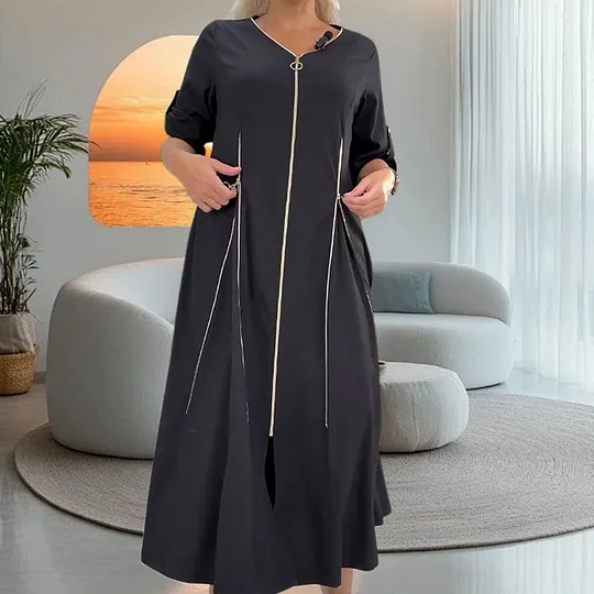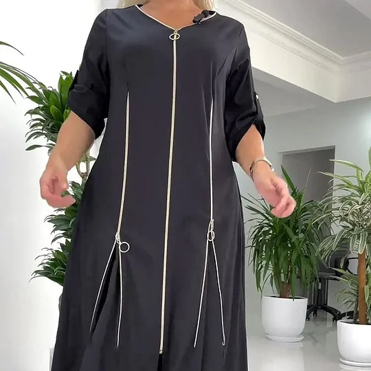 Ulepsz swoją garderobę dzięki naszej eleganckiej, damskiej, długiej sukience z zamkiem błyskawicznym! Idealna na każdą okazję, łączy w sobie elegancję z wygodą. Kup teraz i poznaj najnowszy trend w modzie! 👗✨