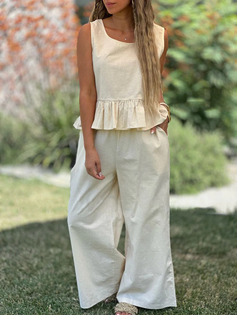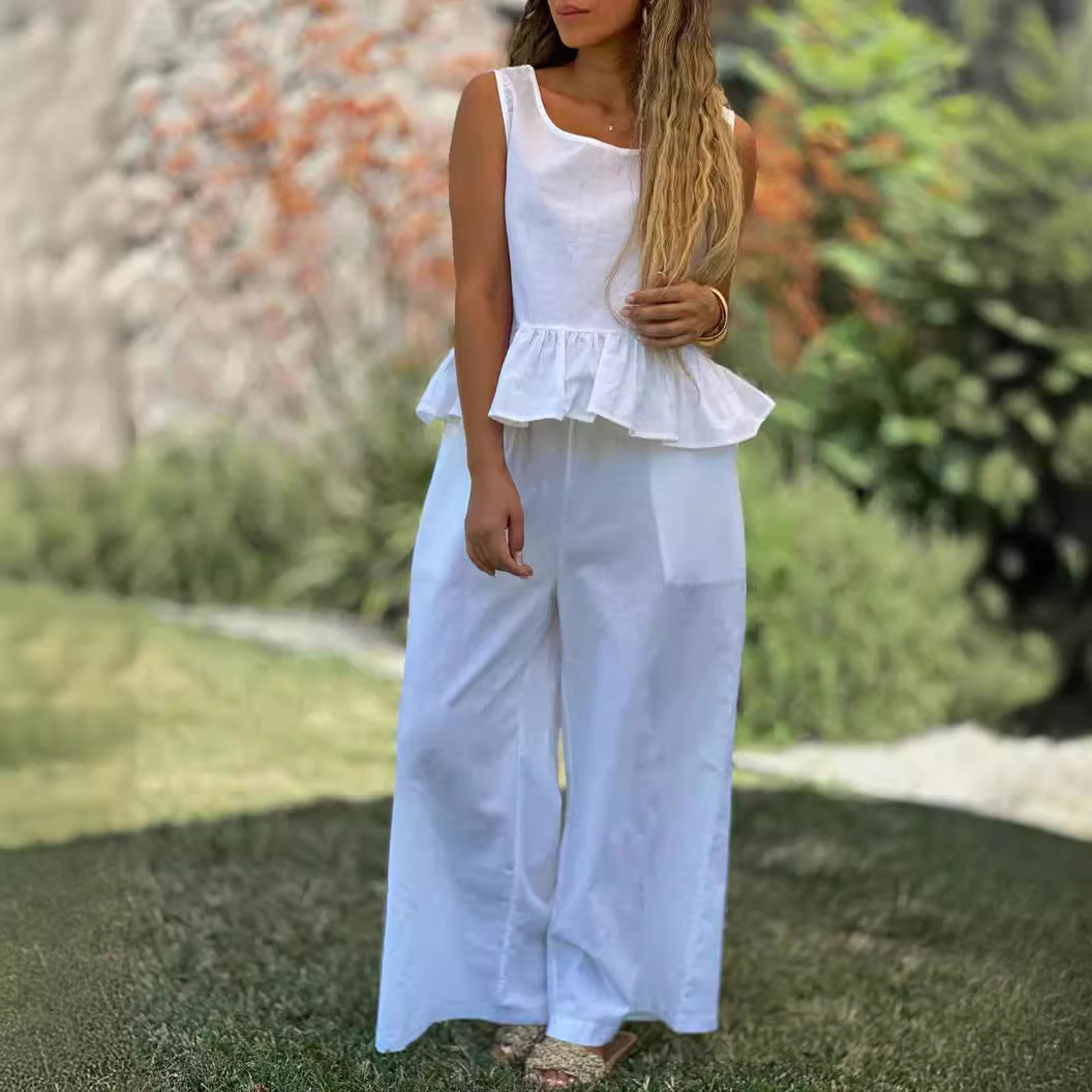 Lekki i oddychający. Kombinezon jest chłodny i jedwabisty, zapewniając maksymalny komfort w gorące letnie miesiące. Luźne koszule i spodnie z szerokimi nogawkami zapewniają swobodę ruchu i luźny krój.
