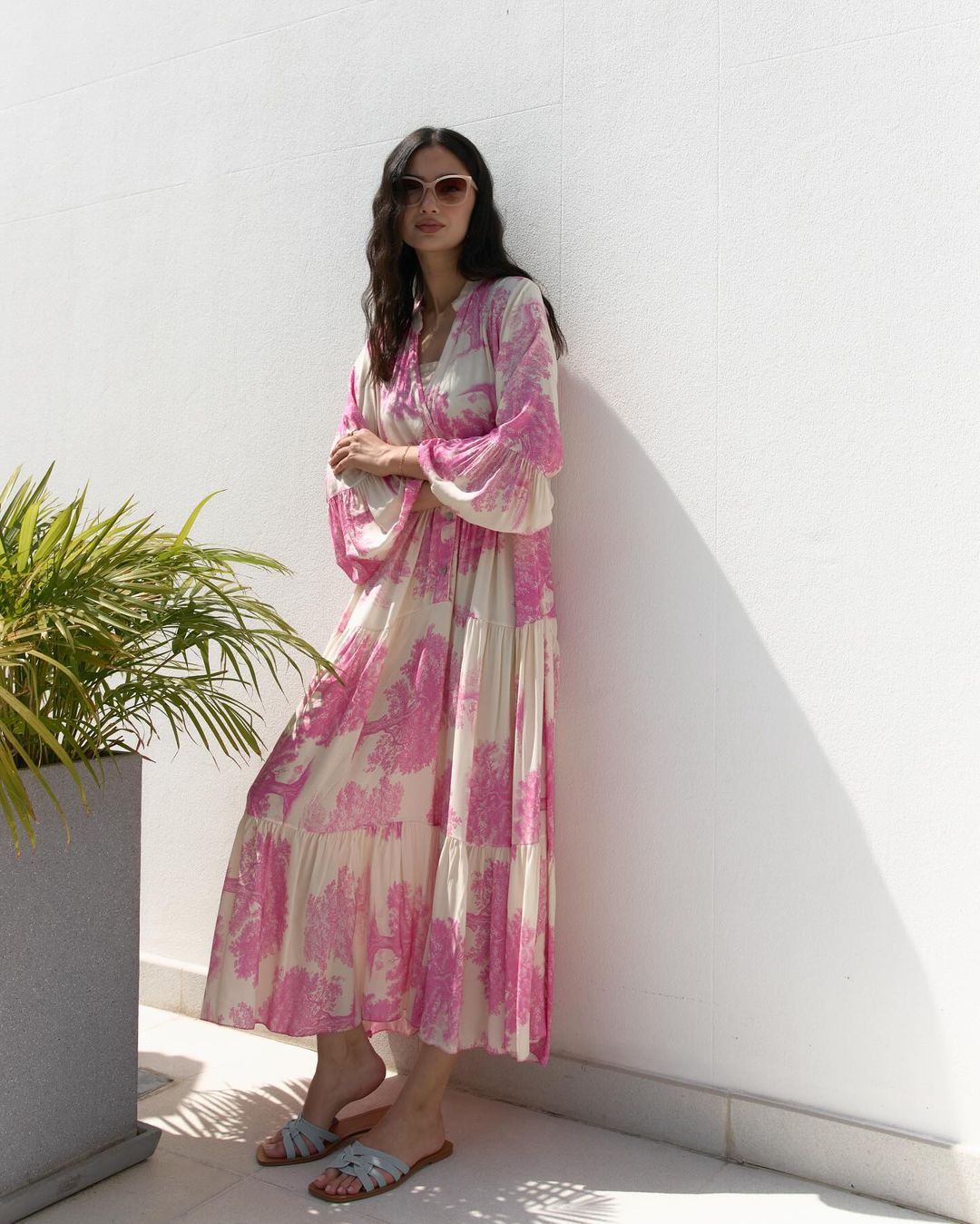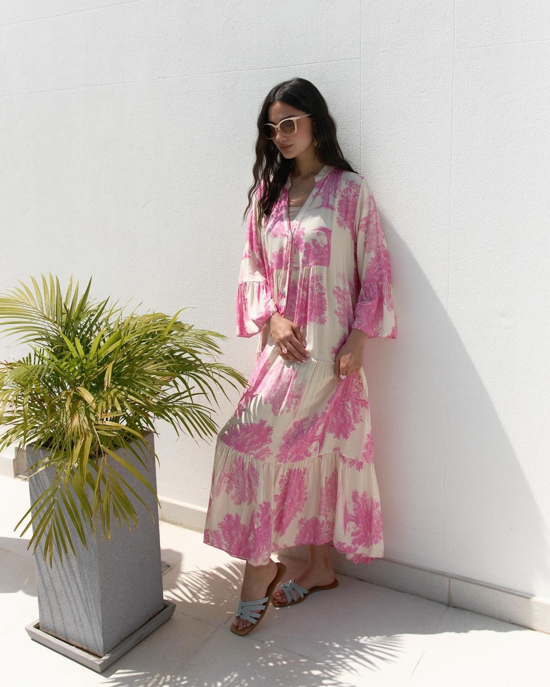 Leśny wzór dodaje kapryśnego charakteru, ożywiając piękno natury w twojej garderobie. Niezależnie od tego, czy bierzesz udział w przyjęciu w ogrodzie, czy po prostu odpoczywasz w domu, ta sukienka sprawi, że poczujesz się jak leśna księżniczka, gdziekolwiek jesteś.