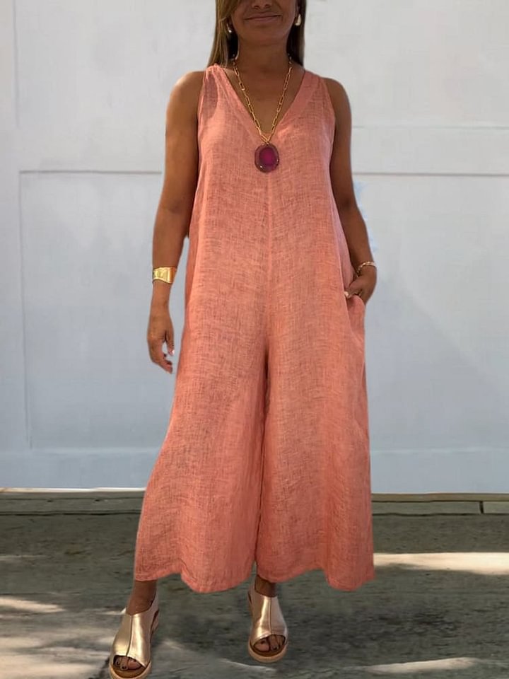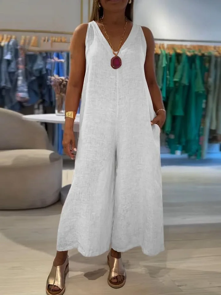 Damski swobodny bawełniany kombinezon z szerokimi nogawkami