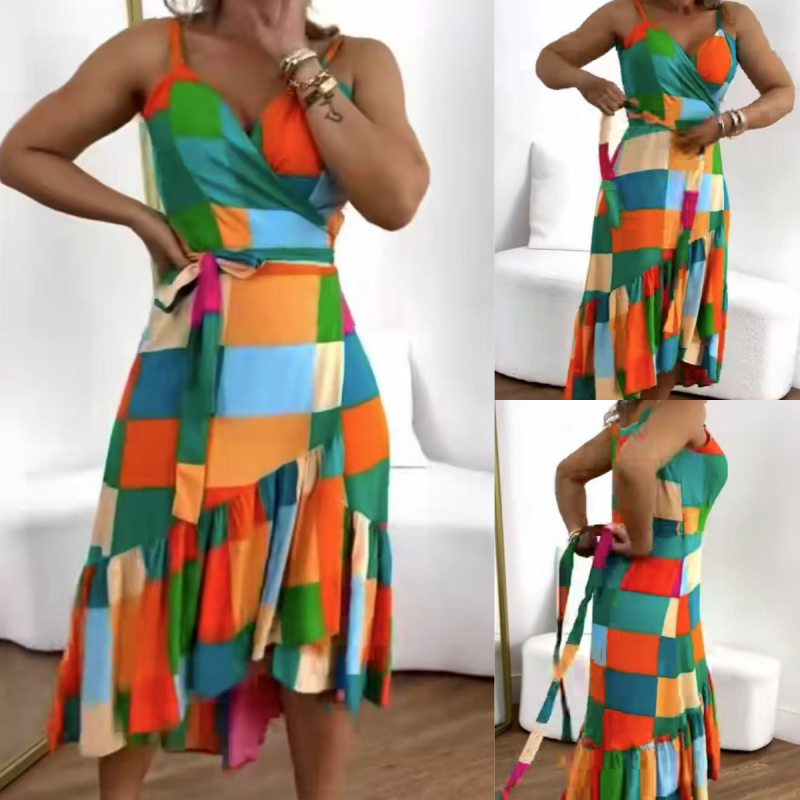 Pakiet obejmuje: 1 * Kolorowy geometryczny krawat geometryczny krawat z talią marszczącą sukienkę