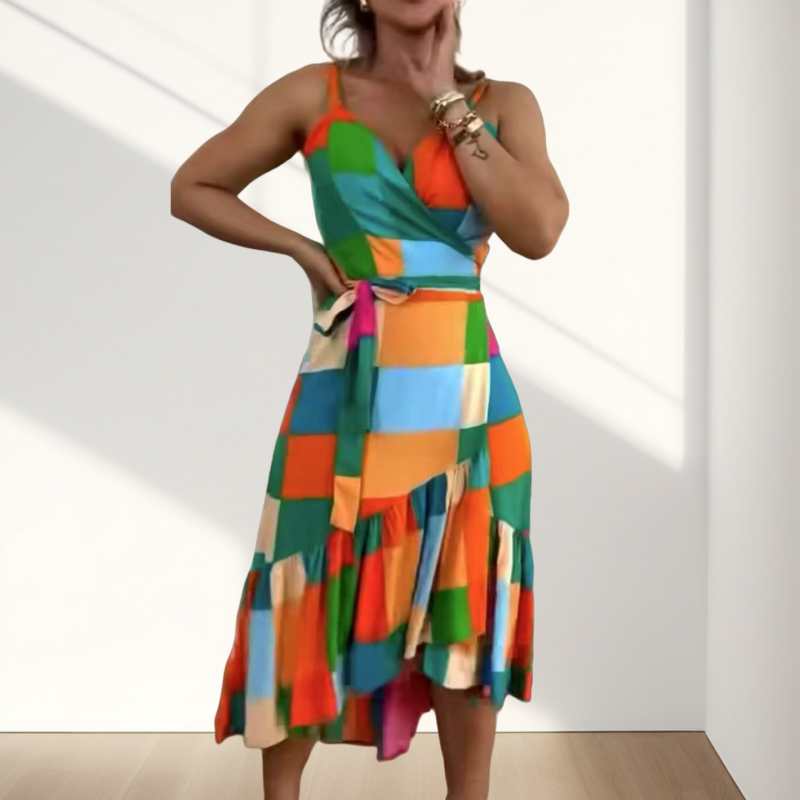 Wibrujący nadruk geometryczny - ta sukienka ma oszałamiający kolor geometryczny, który dodaje zabawnego i nowoczesnego dotyku garderoby, idealnego do składania oświadczenia przy każdej okazji.
