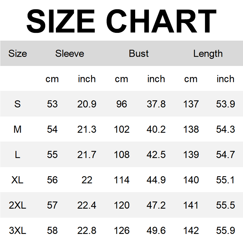 | 2XL | 57 | 22.4 | 120 | 47.2 | 141 | 55.5 |
