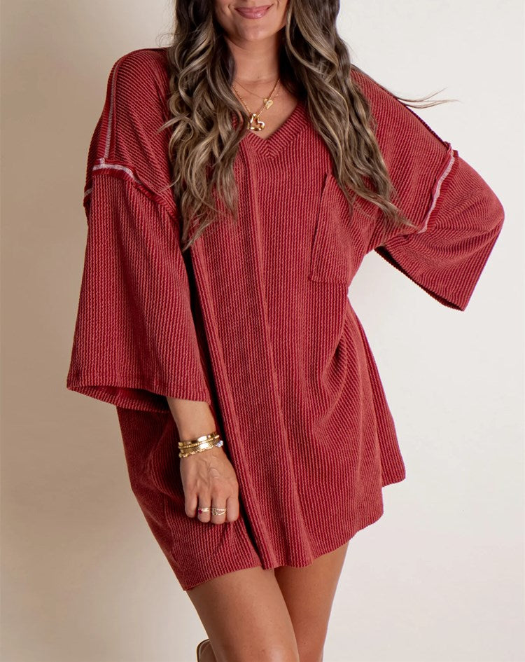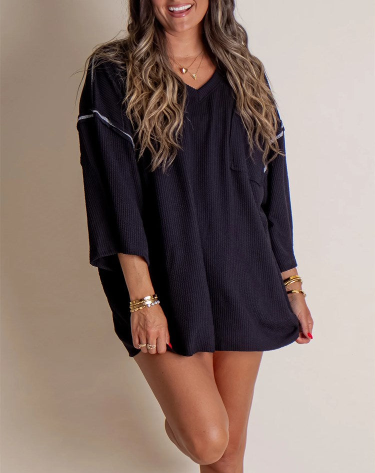Wyprzedź konkurencję w modzie dzięki naszemu miejskiemu prążkowanemu topowi z dekoltem w kształcie litery V!