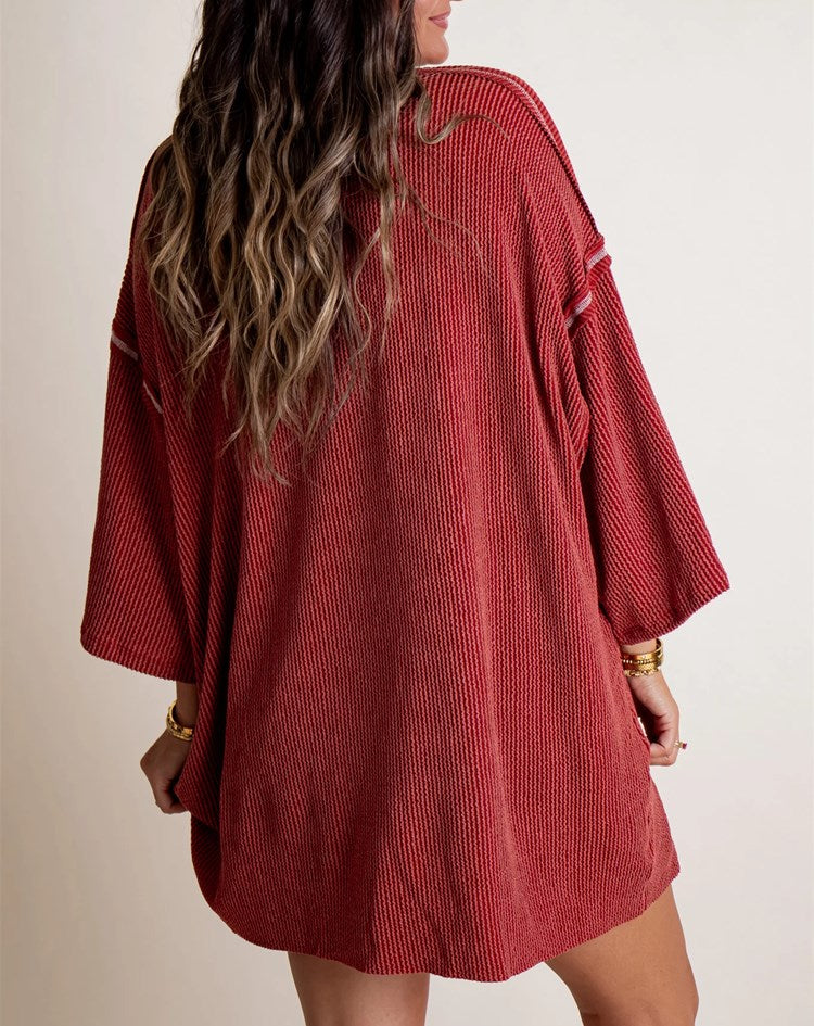 Ten stylowy i wygodny top ma unikalną miejską, prążkowaną fakturę, odsłonięte szwy i dużą przednią kieszeń. Krój oversize i surowy brzeg dodadzą charakteru każdemu strojowi.