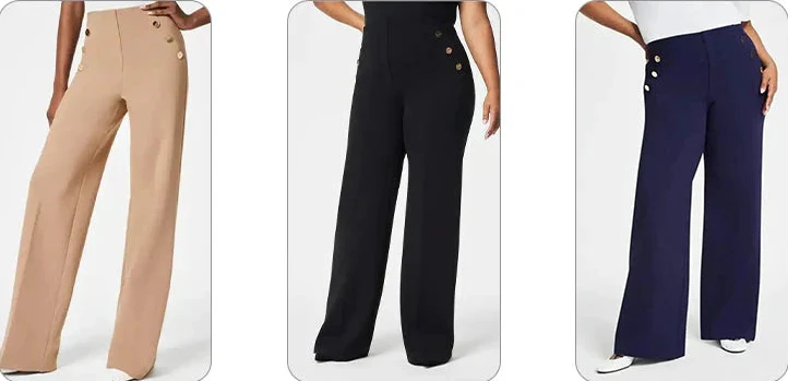 Zaprojektowane z najwyższej jakości rozciągliwej tkaniny, wysoki poziom zakrycia talii i ukryta technologia kształtowania rdzenia, te wciągane spodnie z szerokimi nogawkami nadają nowy wymiar sylwetkom w stylu retro.