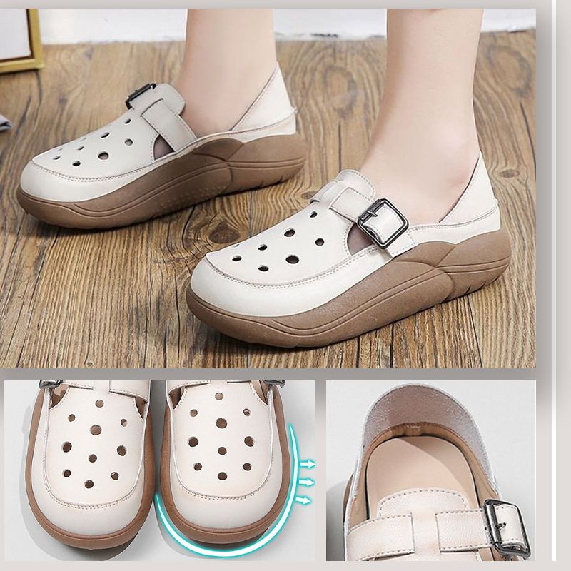 Te sandały z okrągłymi palcami są wystarczająco mocne, aby utrzymać podbicie stopy, ale są również miękkie i giętkie, co zapewnia amortyzację, amortyzację i wygodę. Można je nosić godzinami bez bólu stóp i kolan.