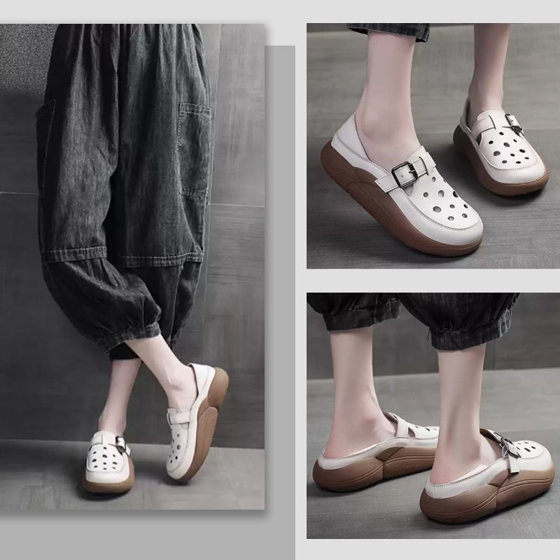 Dzięki podwójnemu zastosowaniu można je nosić jako buty wsuwane lub sandały. Wygodna miękka gumowa podeszwa pomaga chronić piętę przed mocnymi lądowaniami podczas chodzenia lub biegania. Pomaga także ustabilizować stopę.