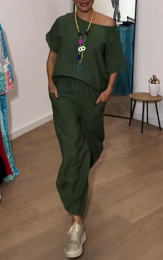 Wszechstronny, swobodny styl: Ten skoordynowany zestaw mistrzowsko łączy modę i komfort w całodniowym noszeniu. Zamienny dekolt oferuje elastyczność stylizacji - noś go jako elegancki top z ramion, aby uzyskać kobiecy wygląd lub dostosuj do klasycznego szyi załogi, aby uzyskać więcej zasięgu.
