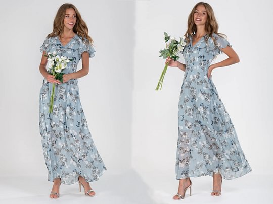 1 x długa sukienka z krótkimi rękawami i kwiatowym wzorem