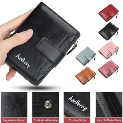 Materiał skórzany, wodoodporny i odporny na wilgoć: W przypadku przechowywanych w nim banknotów, produktów elektronicznych itp. nie musisz martwić się deszczem i wilgocią. Ponadto jest łatwy w czyszczeniu, odporny na zużycie i nie blaknie.