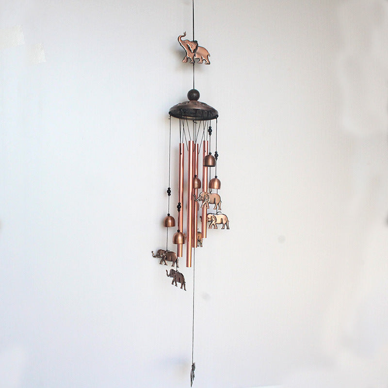 【UNIKALNY DESIGN】 Miedziany dzwonek wietrzny z koniem, wykonany ręcznie z solidnym metalowym zwieńczeniem, 4 solidnymi aluminiowymi rurkami, 6 małymi końmi i 1 dużym koniem.