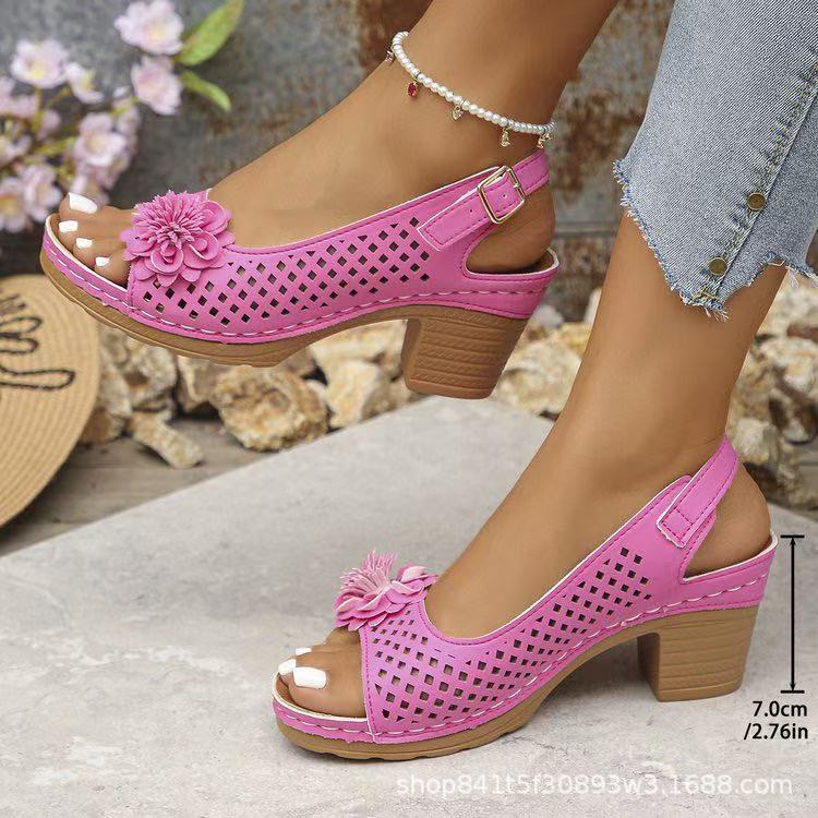 Pakiet zawiera:1*Kobiece sandały na obcasie z kwiatowym wydrążeniem