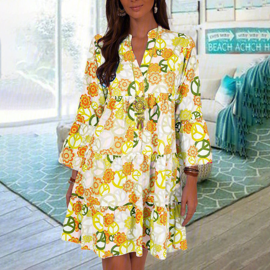🌸 Witamy w morzu letnich kwiatów! Zapinana na guziki sukienka w kwiatowy wzór, z dekoltem w kształcie litery V, pozwala cieszyć się świeżym, ogrodowym stylem.